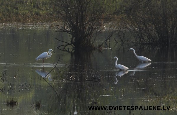 Great White Egrets Egretta alba during spring floods. Especially protected species, common in Dviete floodplain, mainly during migration.