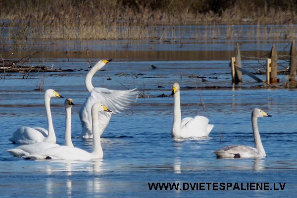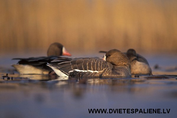 Thousands of White-fronted Geese Anser albifrons gather in Dviete floodplain during spring migration.