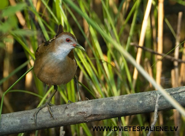 Little Crake Porzana parva. Occurs in overgrown waters with reed and cattail clusters. Found in the lakes Skuķu and Dviete within Dviete floodplain.