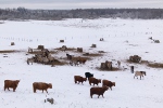 Dviete floodplain grasslands are covered with thick ice this winter due to their over-flooding before frost. So, only branches and bark of bushes and trees, as well as shoots of bushes, cut during last winter, are available for grazing animals - 'Konik' horses and cattle. Browsing scrubs and their shoots, animals prevent overgrowing of grasslands. Still in winters, severe and rich of snow, as it is now, it is necessary to provide additional food. 370 rolls of hay are already used in both grazing areas in total this winter.